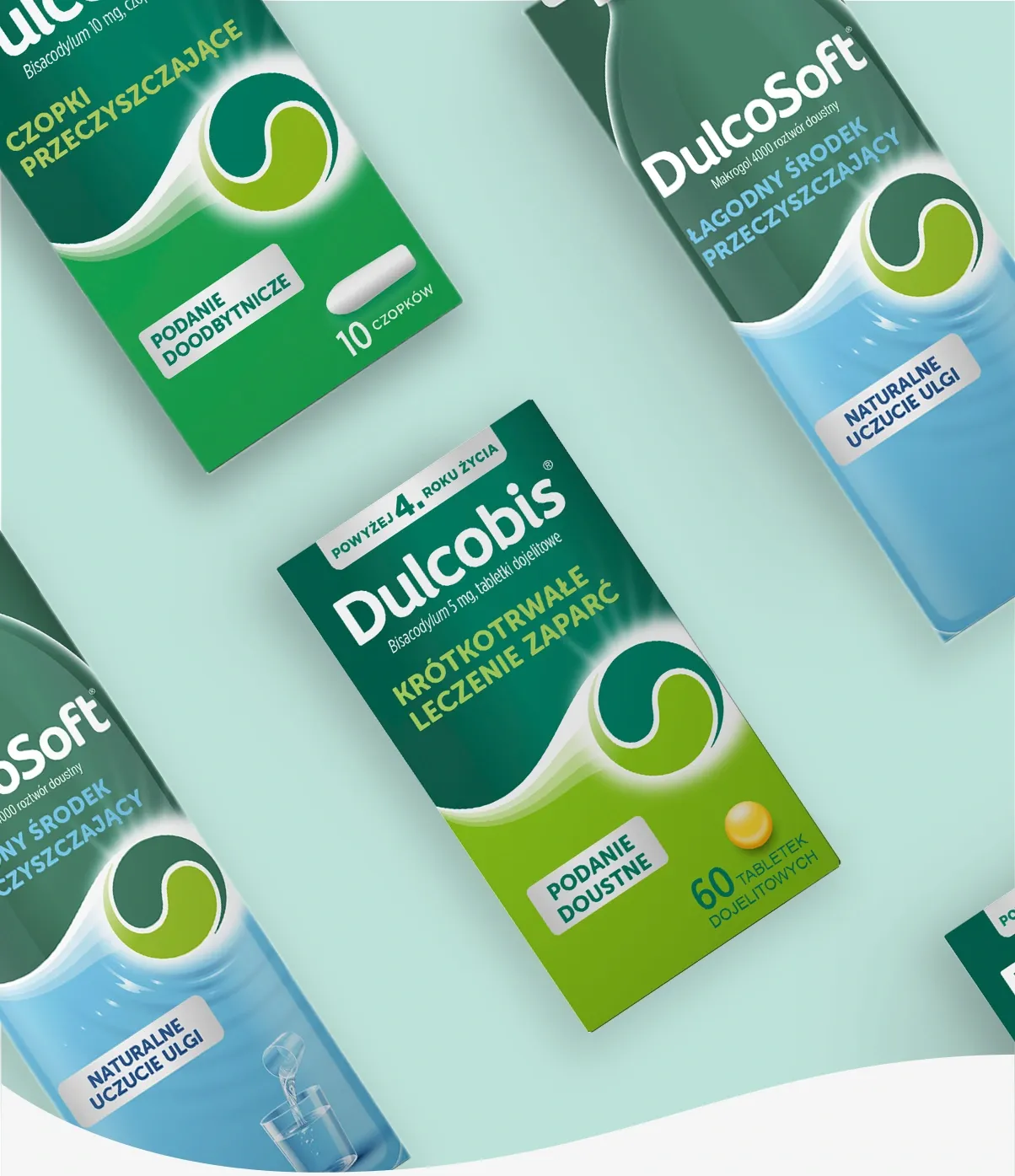 Dulcobis® (produkt leczniczy) zawiera bisakodyl, który stymuluje mięśnie jelit odpowiedzialne za wypróżnianie, aby pobudzić Twój organizm do działania. Zwiększa również transport wody i elektrolitów do jelit, co zmiękcza masy kałowe1.